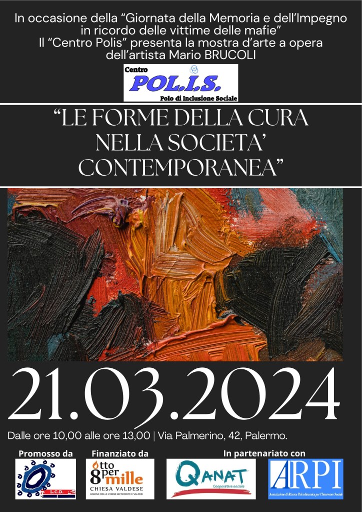 In occasione della “Giornata della Memoria e dell’Impegno in ricordo delle vittime della mafia” l’associazione di promozione sociale Lega Contro la Droga presenta la seconda edizione della mostra d’arte ad opera dell’artista Mario Brucoli, dal titolo “Le forme della cura nella società contemporanea“.